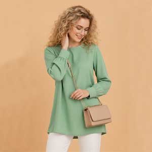 Light Grey Modest Tunic for Women – Button Cuff Long Shirt | Elegant Casual & Office Wear